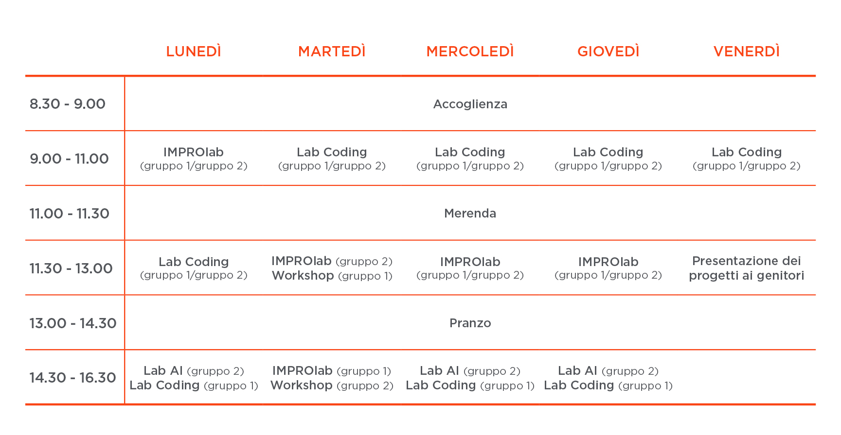 Participants will present their projects to their parents, showing the work and skills acquired during the week. This final event will provide an opportunity to share the results and celebrate their achievements.